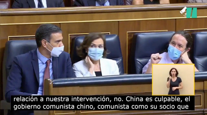 El líder de Vox, que ha arremetido contra China en varias ocasiones, aprovechó para llamar comunista al vicepresidente Pablo Iglesias, que respondió con un gesto que pasó desapercibido para muchos.