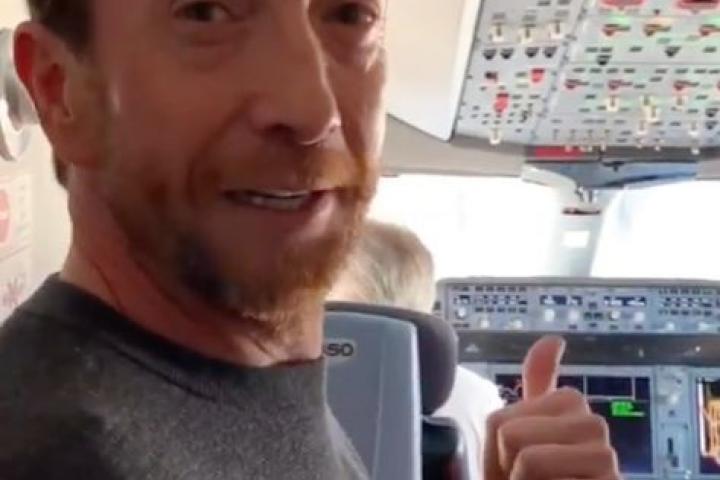 “Antes de que suba todo el mundo, mirad el pedazo de avión en el hemos volado a Londres todo el equipo y pasajeros. Lleno hasta arriba!”, escribió mientras se le veía correr de una punta a otra del enorme aparato.