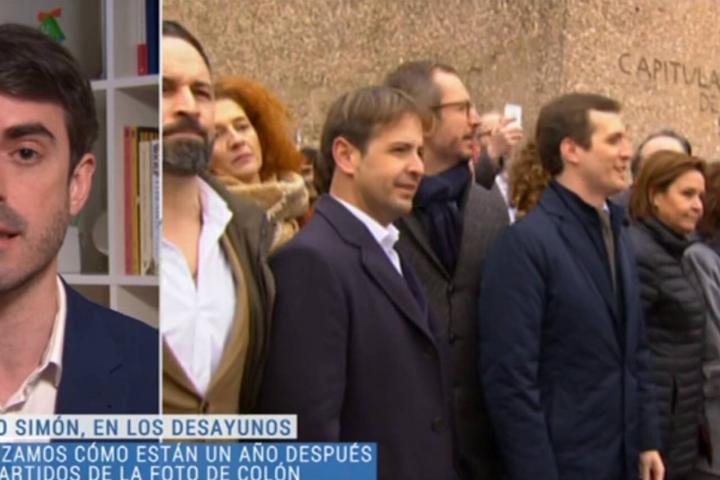 “Cuando Sánchez convoca elecciones para el 28 de abril, aprovecha esta foto de Colón”, ha analizado Simón, quien resalta que “hay un partido nuevo, Vox, que deja un escenario inédito en la derecha: una triple división”.