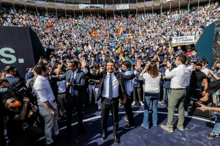 La madrileña no se atiene a un techo: nada le está vedado. Si el presidente del Gobierno va a Estados Unidos, ella aprovecha y le imita y aparece en el cónclave valenciano como estadista, que recibe las mayores y más encendidas aclamaciones. Como es lógico, niega la mayor tras haberse convertido en la deseada: su lugar es Madrid, porque Madrid es España… y abraza a Pablo Casado.