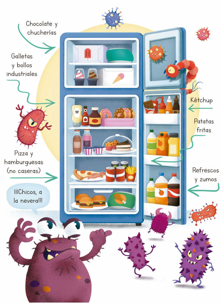 Para facilitar la comprensión del papel fundamental que juega la nutrición en todo esto he escrito Sanotes, sanitos (B de Blok, 2021). En él invito a los lectores a conocer en familia el viaje de los alimentos por el proceso digestivo en forma de cuento ilustrado, de manera que no solo los adultos podamos entenderlo fácilmente, sino que también los niños conozcan qué comen los bichitos buenos de nuestro cuerpo y qué comen los bichitos malos. Porque, al igual que pasa con los padres, la información es conocimiento, y necesitan saber que comiendo sano y variado nos sentimos mejor.
