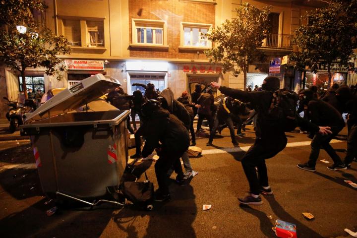 Nueva noche de disturbios en Barcelona en las protestas por el encarcelamiento del rapero Pablo Hasél.