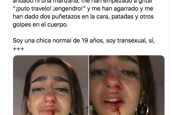 “Explicadle vosotros a mi madre esto, decidle a vuestra familia que está a kilómetros que os han dado de hostias por ser transexual. No me merezco esto. Y desde aquí lo denuncio públicamente”, indica la joven, quien concluye: “No más transfobia, por favor, no quiero morir mañana”.