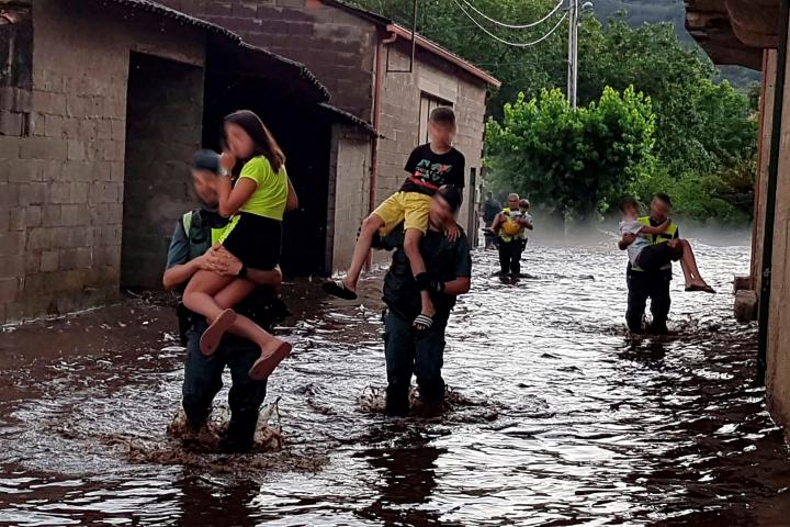 Las tareas de control y rescate, que apoyaron los vecinos con su ayuda, han sido continuas, a destajo, y son numerosas las ocasiones en las que los profesionales de los respectivos cuerpos implicados (Guardia Civil, Protección Civil, Bomberos) han tenido que cargar con niños, personas mayores y animales domésticos que se habían quedado atrapados por el agua.
