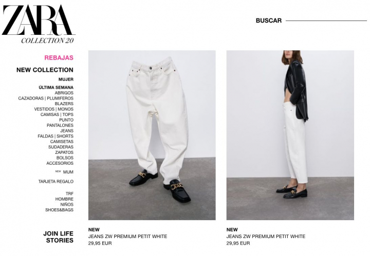 Captura de pantalla de la web de Zara.ZARACaptura de pantalla de la web de Zara.ZARA