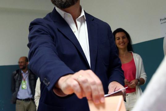 El economista de Vox Iván Espinosa de los Monteros, ha ejercido su derecho al voto en el Colegio San Agustín de Madrid