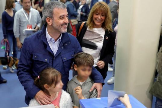 El candidato del PSC a la alcaldía de Barcelona, Jaume Collboni, acompañado por sus sobrinos