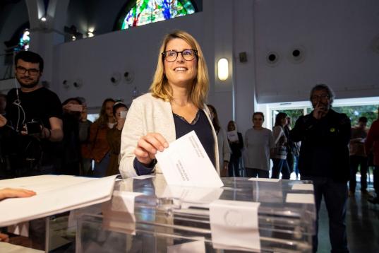 La número dos de JxCat al Ayuntamiento de Barcelona, Elsa Artadi, vota en el Centro Cívico Pere Pruna de Barcelona