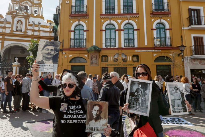 “Luego, estaba mi abuela, que se llamaba la Frasca y yo llevo su nombre”, dice Maqueda. Con la foto de su abuela, sobre todo, pero también con la del resto de sus represaliados, Paqui lleva unos 20 años manifestándose un sábado al mes en la Plaza de la Gavidia de Sevilla. Iba con su hermana Gracia. Las dos, tan iguales, de mirada tan vida y emocionada, de las más jóvenes del grupo, contaban a quien pasara la historia de los suyos. Eran apenas un puñado de activistas, de familiares, de historiadores, los que han presionado a los Gobiernos hasta llegar a donde estamos hoy, con Queipo fuera de donde nunca debió estar, sin honores para los carniceros.