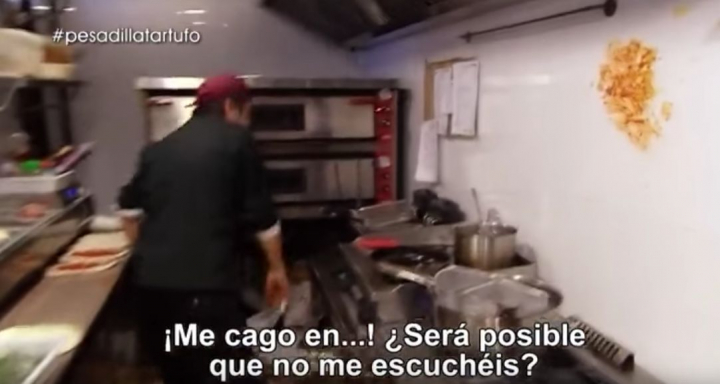 El caos era tal en el restaurante que durante la grabación del programa uno de los protagonistas acabó estrellando una pizza en la pared de la cocina.