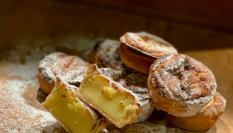 Lavar y cortar las patatas con piel en rodajas de 6mm de grosor. Freírlas en aceite hasta que estén doradas. Pasar a papel absorbente y reservar.