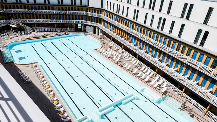 De noche, el merecido descanso llega entre las sábanas del hotel Molitor y, con un poco de suerte, también con vistas a su icónica piscina. París es una ciudad de piscinas, pero ninguna de ellas es como la del Molitor. Ubicado en el distrito XVI, sí, hay vida y mucha más allá del centro del centro de la ciudad, este magnífico complejo hoy reconvertido en hotel de lujo y varias cosas más, fue inaugurado en 1929 por dos nadadores olímpicos, uno de los cuales fue Johnny Weissmuller, también conocido como Tarzán, el personaje que años después interpretaría en la gran pantalla. Pero más allá de su piscina (abierta todo el año y climatizada a 28 grados), si es que se puede ir más allá, cabe destacar que, cerrado en 1989 y catalogado como monumento histórico, aquel edificio en ruinas es hoy un magnífico escaparate de arte urbano, con grafitis por doquier. Vista la importancia histórica, monumental y artística del Molitor, lo de menos son sus habitaciones donde, por cierto, se descansa divinamente. No olviden el bañador.