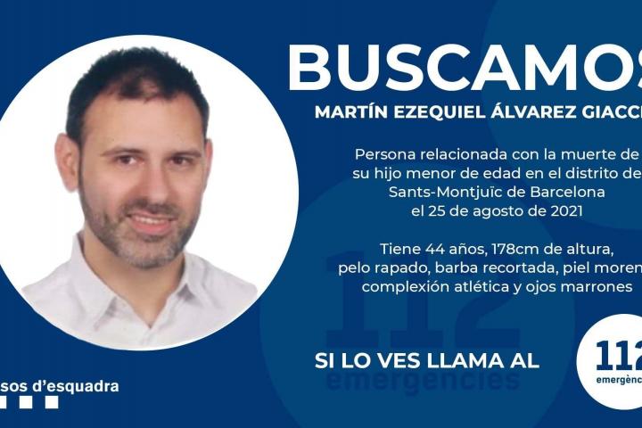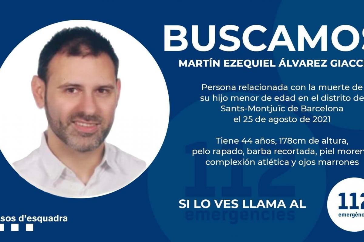 Los Mossos d’Esquadra prosiguen la búsqueda del padre del niño de dos años asesinado la noche del martes en un hotel de Barcelona, Martín Ezequiel Álvarez Giaccio, por su presunta relación con la muerte del menor.
