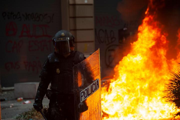 Desde ese lunes, Cataluña vive a la brasa. Las llamas de los contenedores y vehículos incendiados llegan a los balcones de las primeras y segundas plantas de las viviendas; las principales vías se han convertido en escenario de una guerrilla urbana perfectamente coordinada y con unidad de mando vía redes sociales. Las barricadas impiden el tránsito.
