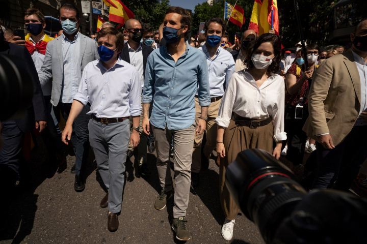 Ya lo intentaron el pasado mes de junio, cuando se unieron a la manifestación en la plaza de Colón para protestar contra los indultos a los presos independentistas. Pero no le salió bien la jugada entonces a Casado, que ni siquiera pisó la propia plaza y tuvo que ver cómo era vitoreada Isabel Díaz Ayuso frente a él. Además, no consiguieron el lleno esperado: sólo reunieron a 25.000 personas, según la Policía Nacional, casi la mitad de la anterior concentración de la derecha y la ultraderecha en el mismo sitio en 2019.