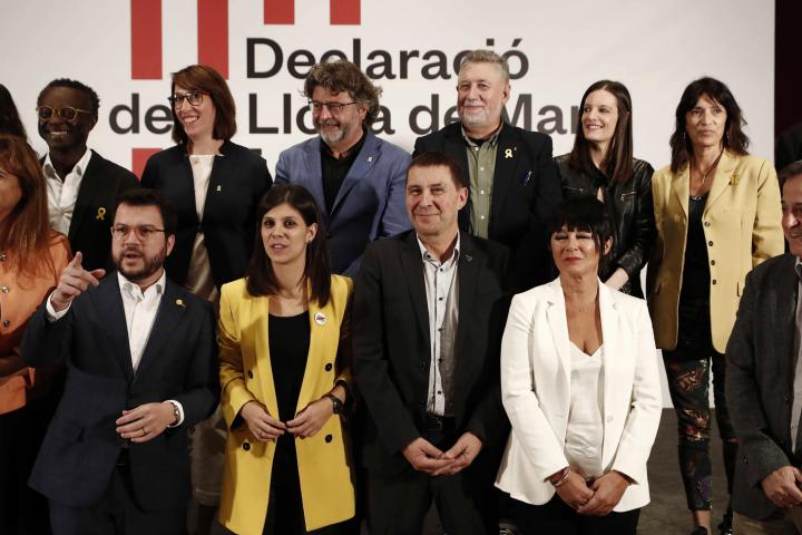 Con la asistencia del vicepresidente de la Generalitat, Pere Aragonès, los partidos que han rubricado la “Declaració de la Llotja de Mar del 25 d’Octubre de 2019” son: BNG, Crida Nacional, CUP, Demòcrates, EH Bildu, Esquerra Republicana, Esquerra Valenciana, MÉS per Mallorca, MÉS per Menorca y PDeCat-Junts per Catalunya.