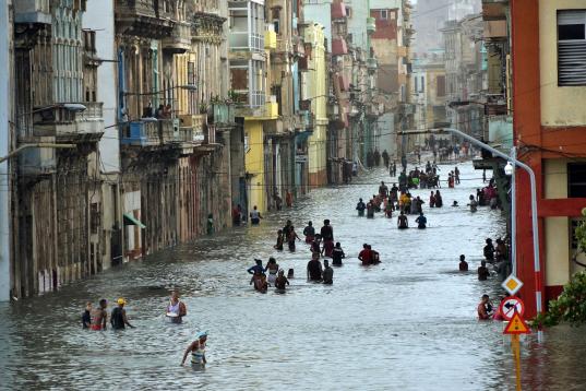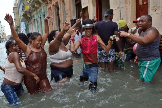 Vecinos de La Habana (Cuba) bailan en mitad de la calle anegada, tras el paso del Irma.Rolando Pujol / EFE