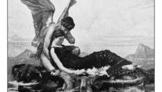 Estas tres personas se sientan de tal forma que A puede ver los sombreros de B y C, pero no el suyo; B sólo puede ver el sombrero de C, y C no puede ver ningún sombrero.