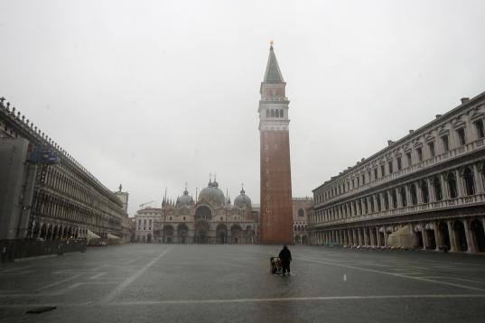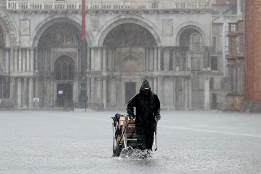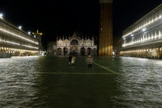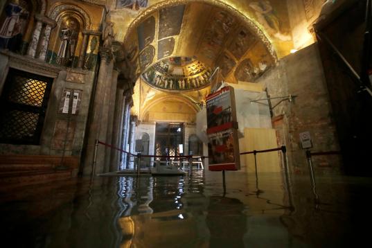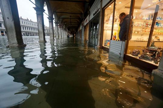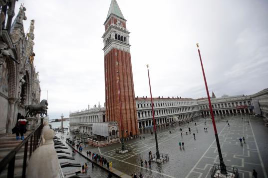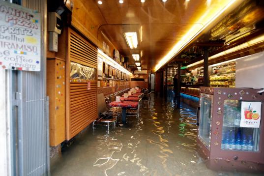La plaza de San Marcos, cuya imagen inundada como una piscina queda ya para la posteridad, también ha visto como sus históricos cafés y restaurantes sufrían los estragos del avance del agua.