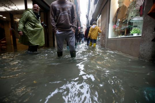 La ciudad de los canales, Patrimonio de la Humanidad, se inundó en la noche de ayer miércoles a causa de un aumento de la marea de 187 centímetros, el nivel más alto en más de medio siglo, desde que en 1966 se alcanzaran los 194 centímetros.