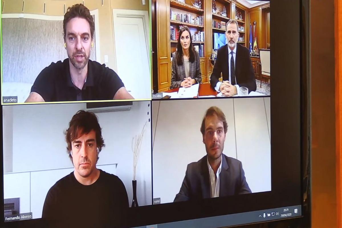 Los embajadores del mundo del deporte @paugasol@RafaelNadal y Fernando Alonso @alo_oficial han podido explicar a los Reyes las distintas iniciativas puestas en marcha para paliar esta crisis y su visión sobre cómo recuperar la normalidad en sus respectivos ámbitos profesionales pic.twitter.com/Kb9rKxkSHg