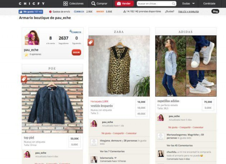La actriz, cuyo nombre de usuario es pau_eche, tiene a la venta una veintena de prendas de su armario, como un vestido de leopardo de Zara por 16 euros, unas botas moteras sin estrenar por 120 euros o un top de piel por 50 euros.
