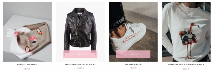 Como se puede comprobar en la web de Space Flamingo, un pañuelo cuesta 48 euros; una cazadora de cuero, 462 euros, las sneakers, 119 euros y la sudadera, 89 euros.