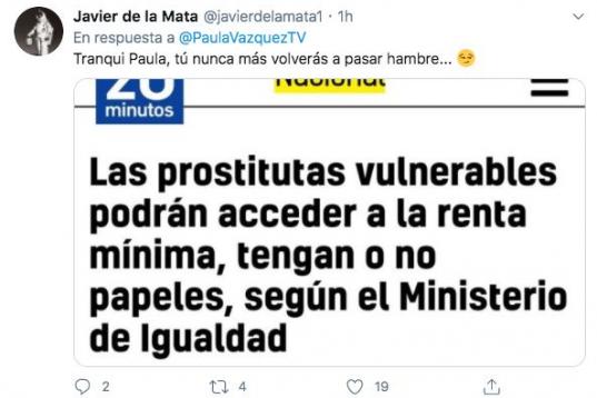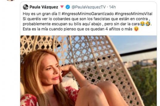 Lamentable lo que está teniendo que sufrir la presentadora Paula Vázquez por expresar su opinión favorable al Ingreso Mínimo Vital, aprobado este viernes por el Gobierno.