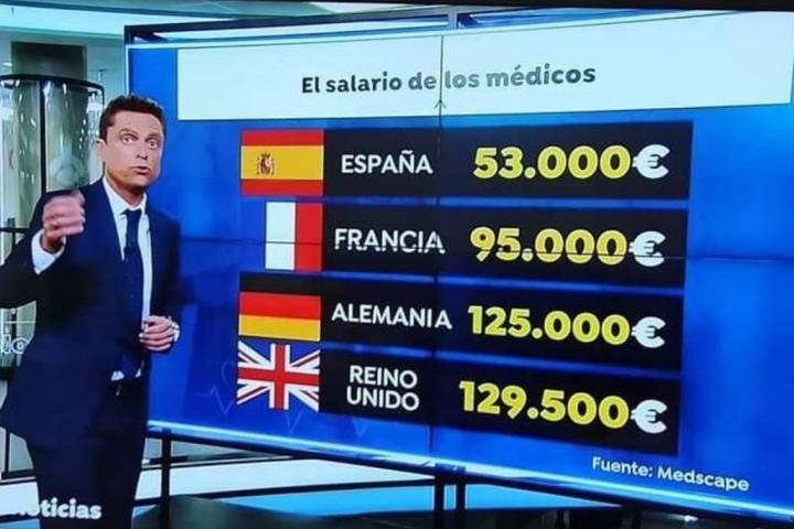 Antena 3 Noticias ha abordado esta semana el asunto comparando los salarios que perciben de media los sanitarios en España con los de otros países de Europa como Francia, Alemania y Reino Unido.