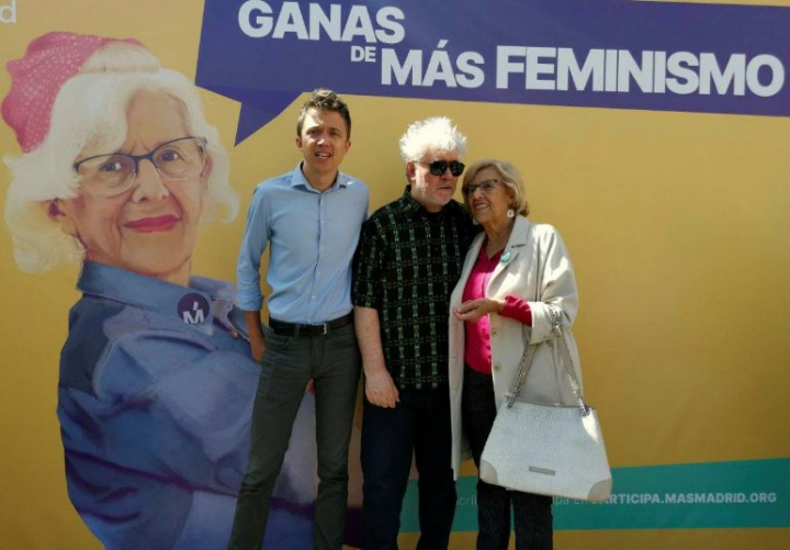 Íñigo Errejón, Pedro Almodóvar y Manuela Carmena.EFE