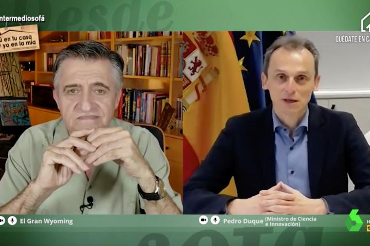 El ministro de Ciencia e Innovación, Pedro Duque, charló este martes con El Gran Wyoming en la edición de El Intermedio (la Sexta) desde casa. El humorista aprovechó para preguntarle si cree que “saldremos de ésta”, en referencia a la crisis sanitaria del coronavirus.