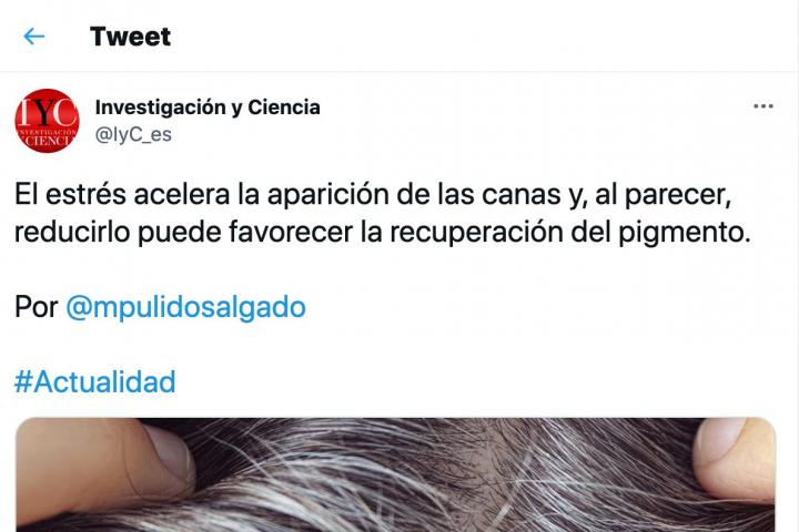 Según el texto, el estrés acelera la aparición de canas y, según @lyC_es, “al parecer, reducirlo puedes favorecer la recuperación del pigmento”.