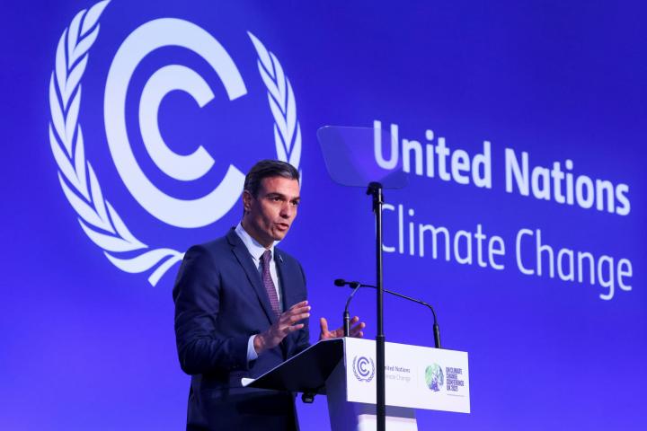 El presidente ha lanzado su plan en Glasgow, donde desde este lunes se reúnen numerosos jefes de Estado y de Gobierno para debatir sobre la crisis climática y las medidas de respuesta inmediata. En ese contexto, Sánchez ha reconocido que España ha “apostado por las energías renovables y por abandonar los combustibles fósiles, por proteger la biodiversidad, los océanos y la Antártida”. También ha apuntado que nuestro país ha reducido la generación de carbón “en un 94% en estos cuatro años”,