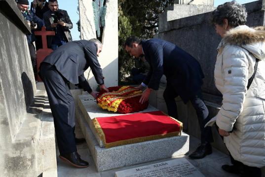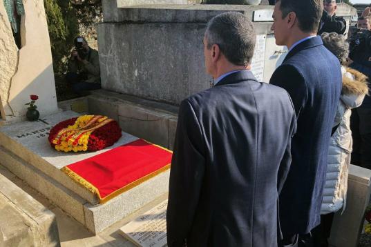 Pedro Sánchez homenajea al exilio español en Francia en la tumba de Manuel Azaña