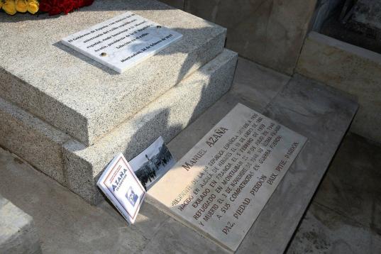 Sánchez es el primer jefe de Gobierno español en visitar la tumba del presidente de la II República y esta mañana ha hecho una ofrenda floral junto a dos familiares de Azaña (María José Navarro Azaña, sobrina, y Santiago de Rivas Salas, sobrino nieto del presidente de la II República).