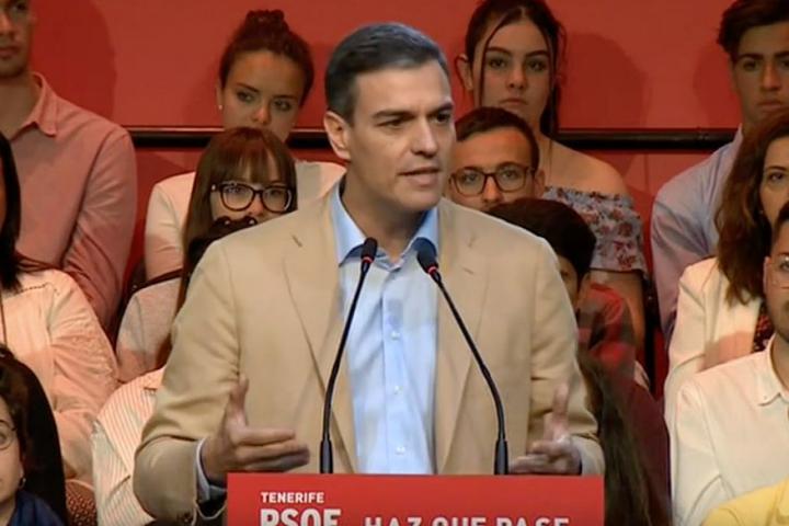 Durante su intervención, Sánchez ha defendido la gestión de su Ejecutivo con Canarias y anunciado un próximo Consejo de Ministros en el archipiélago, si sigue en La Moncloa, y una visita a las ocho islas.