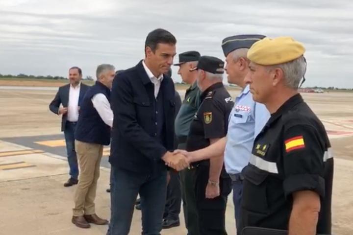 Sánchez ha sido recibido en el aeropuerto de El Altet por el ministro Jose Luís Ábalos, y desde allí han iniciado un recorrido en helicóptero hacia Orihuela para observar el alcance de las inundaciones.