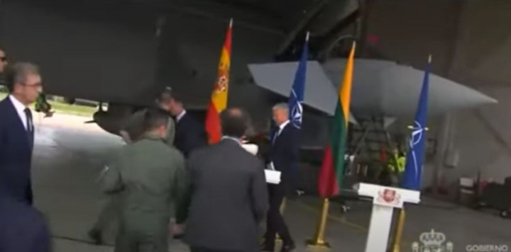 El jefe del Ejecutivo español estaba interviniendo en un acto en la base junto al presidente de Lituania, Gitanas Nauseda, y en medio del discurso de este último saltó una alarma “alfa” ante la presencia de un avión no identificado en el espacio aéreo y se tuvo que interrumpir la agenda para que los aviones Eurofighter españoles despegaran para proceder a la identificación.