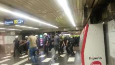 Tremenda pelea entre un grupo de jóvenes y vigilantes en el metro de Barcelona