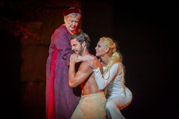 Para contar este cuento de mujeres cuenta con un elenco muy popular. Penélope es Belén Rueda. El aya Euriclea es María Galiana. Y Telémaco es Maxi Iglesias. Los tres iconos de la televisión. Con los que han comido, cenado y pasado muchas tardes y muchas noches los espectadores españoles rompiendo audiencias. Por eso no es de extrañar el lleno que se ve, a pesar de los asientos que la distancia de seguridad obliga a dejar libres. A ellos se añade como Ulises Jesús Noguero, un actor muy apreciado tanto por los profesionales como por los amantes del teatro.