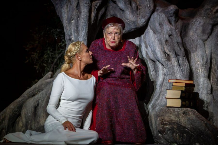En el crescendo, para hablar de las cosas buenas, señalarían la escenografía creada por Curt Allen Wilmer. Por ese árbol que le permite a Magüi Mira crear unas hermosas imágenes que parecen sacadas de grabados antiguos de Durero o de los pintores ingleses de la Hermandad Prerrafaelita. Lo bien que lo han sabido combinar con las escaleras contemporáneas. Y, a su vez, incorporarlo al teatro romano en el que se representa. Quizás, propondrían como lo mejor de la función la manera en la que la directora ha combinado todos los elementos, desde la escenografía hasta el elenco, para crear buenas e interesantes imágenes.