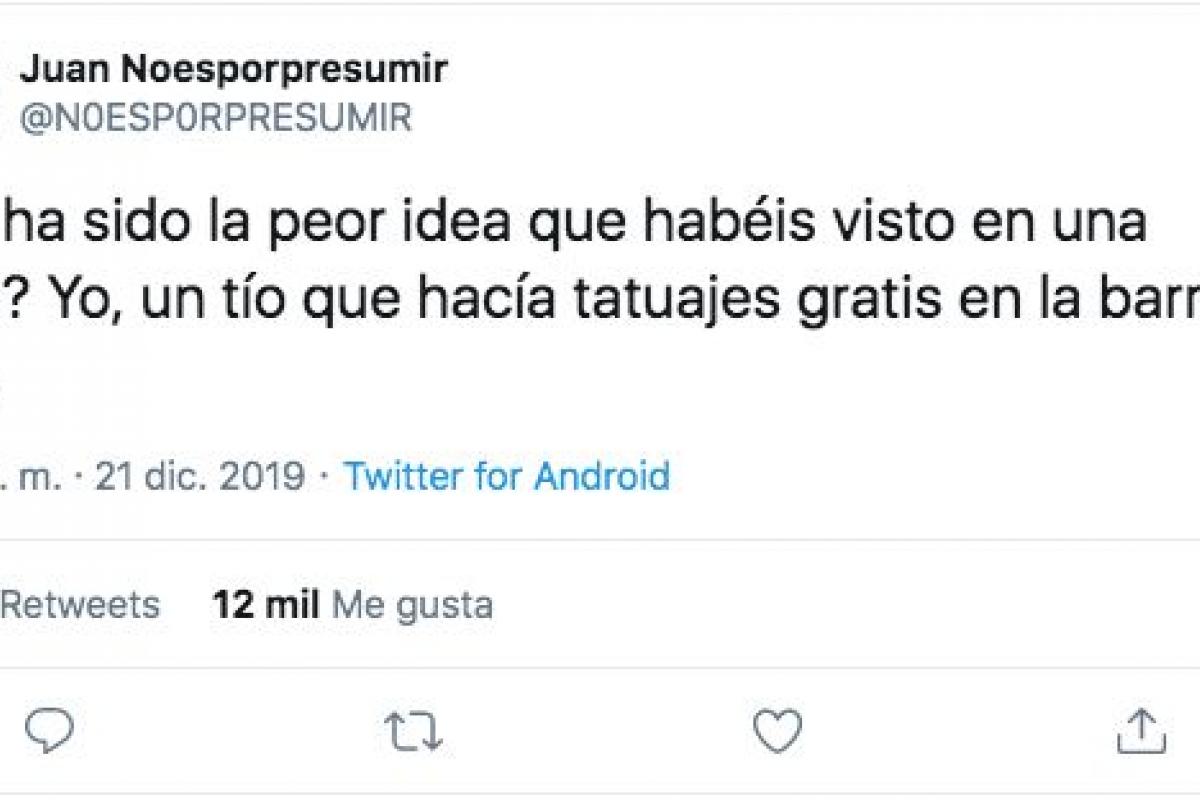 El 21 de diciembre lanzó esa pregunta junto a su respuesta: “Yo, un tío que hacía tatuajes gratis en la barra libre”.