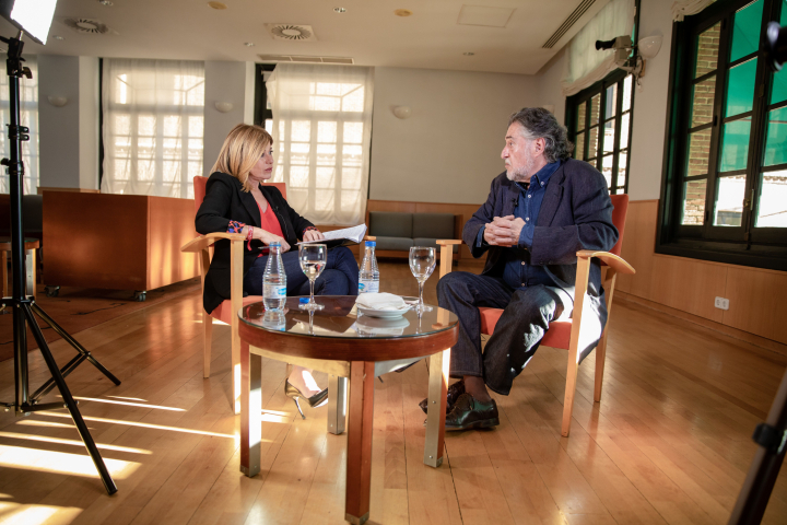 Estoy encantado de estar aquí. La verdad es que me gusta mucho. Cuando no sé dónde ir, me pierdo y vengo por aquí. Me gusta pasear por sus jardines, me trae muy buenas sensaciones. Sensaciones de lo que fue la Residencia de Estudiantes, de lo que significó la Institución Libre de Enseñanza y lo que para mí luego fue el relevo del Instituto Escuela, en el Ramiro de Maeztu. También de alguna forma es lo que me gustaría que fuera Madrid, una ciudad escuela para todos nosotros.