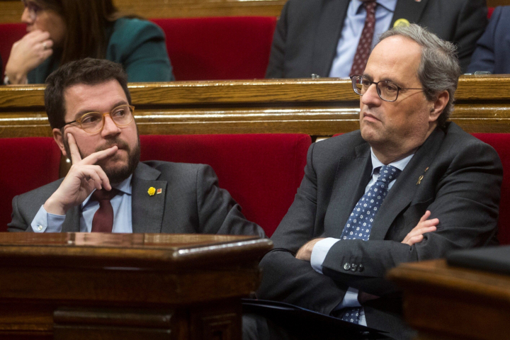 La hoja de ruta de Torra: convocar elecciones, pero no fijar la fecha hasta que no se aprueben los presupuestos en el Parlament. ERC no puede romper la baraja ya que las cuentas han sido precisamente diseñadas desde la Consellería de Economía que también dirige Aragonès. Le toca esperar al de Esquerra para su intento de comerse a Junts.