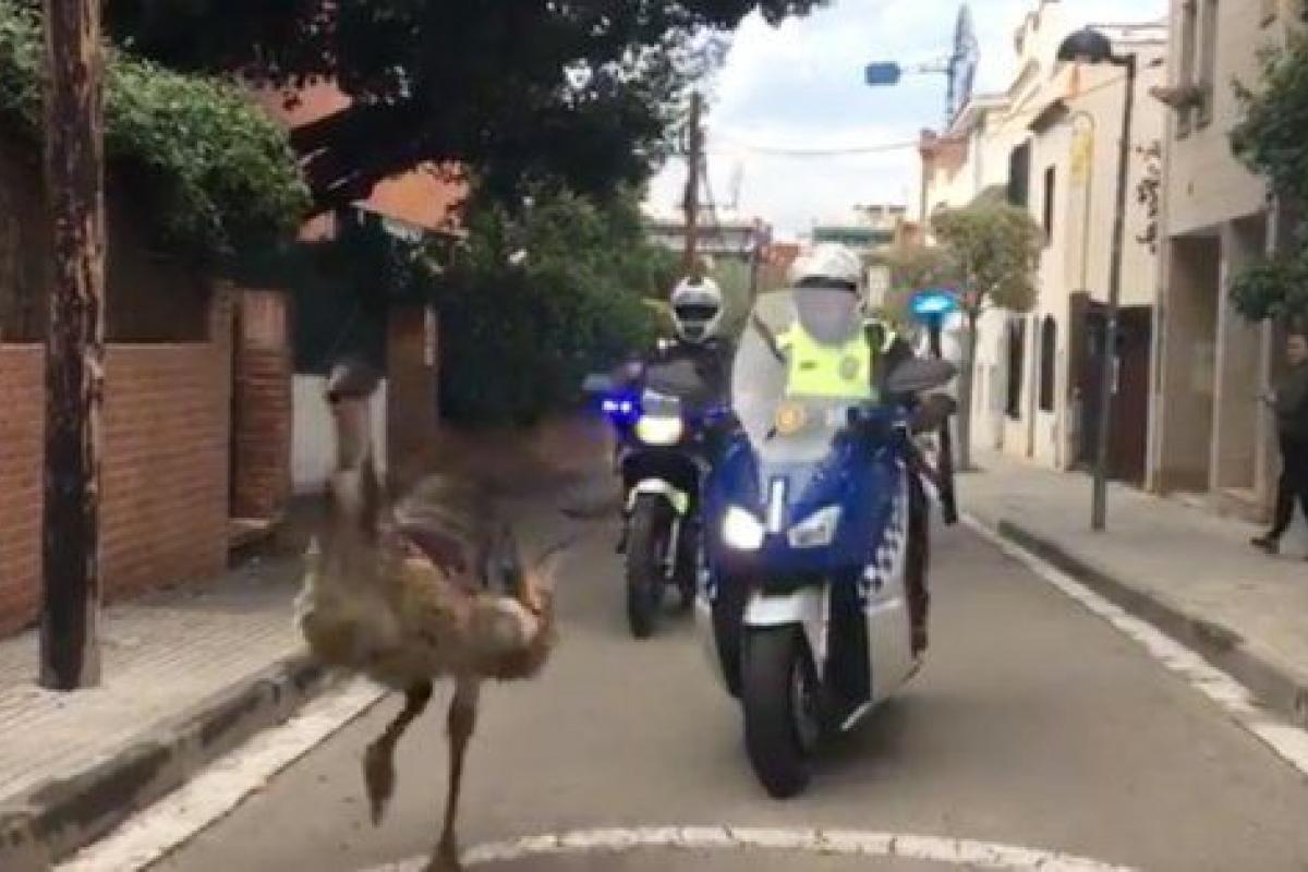 Persecución policial a un emú por las calles de Sant Cugat (Barcelona)
