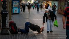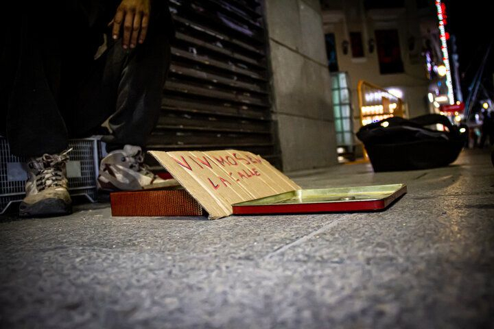 Una existencia reducida a un puñado de baldosas en el centro de Madrid. Ese es “el mundo”, así lo definen, que habitan muchas personas sin techo en los tiempos de coronavirus. Un paseo por la zona más comercial de la capital basta para hacer un retrato de la pobreza extrema.