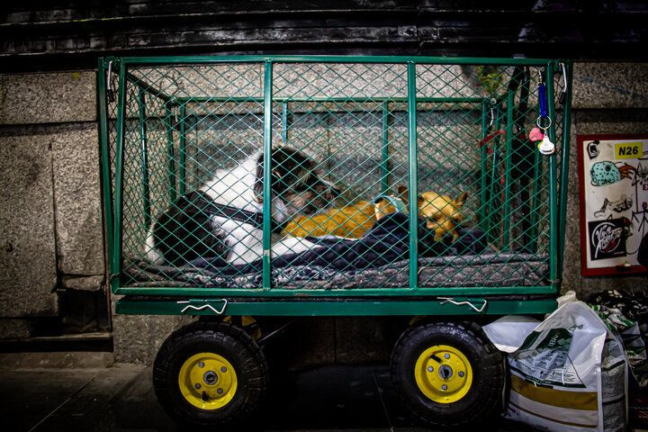 No son solo sus animales, son su compañía y la razón por la que no duerme en un albergue. “Solo hay dos que los admiten, uno está lleno y el otro me obliga a dejarlos en una perrera cercana y sé que si los dejo allí ya no me los devolverán. Tal es su relación, que se dirige a ellos en italiano y en vasco. “Así consigo que no salgan a cada persona que les llame”.