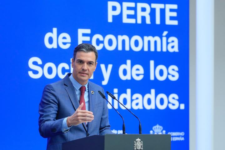 El presidente del Gobierno ha presentado este viernes el PERTE de la Economía Social y los Cuidados, al que se destinarán unos 800 millones de euros. Este nuevo PERTE se aprobará el próximo martes en Consejo de Ministros.