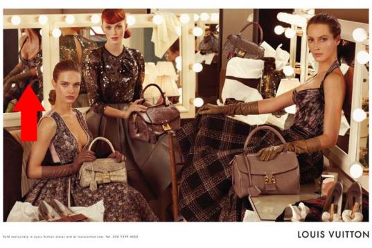 Para un catálogo de accesorios de H&M, Arlenis Sosa y Jessica Stam fueron fotografiadas por Mikael Kangas. Esta foto llamó la atención de HuffPost Style. No hay pliegues en el vestido, como si el torso estuviera dibujado.