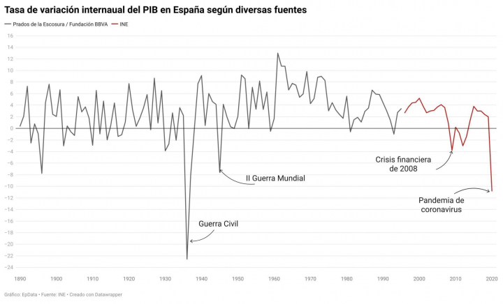 A finales de abril, los datos avanzados por el INE para el primer trimestre apuntaban a un crecimiento trimestral del PIB del 0,3% y a una tasa interanual del 6,4%, tasas, en ambos casos, que superaban en una décima las publicadas este viernes.